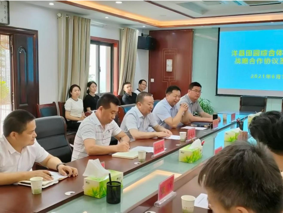 洋县县长杜家才和集团董事长黄文选分别代表双方签约并致辞,副县长张峰主持签约仪式。县经济合作促进中心、文旅局、龙亭镇领导,集团常务副总裁李永平、副总裁苏君杰、集团总裁办人资部长、总裁助理和集团农业公司总经理张宇参加了签约仪式。
