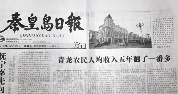 作为“三年大变样1号工程”和地标级建筑,森源.领秀城荣登上2010年12月24日出版的《秦皇岛日报》。
