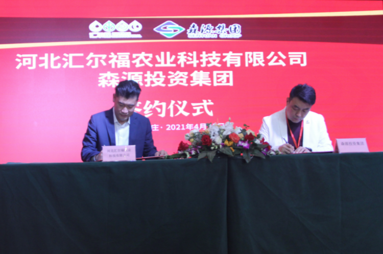 作为东道主,河北汇尔福农业科技有限公司首先作了产品及产业模式发布会。作为主要嘉宾,集团黄总与汇尔福董事长张宇会上进行了战略合作签约。签约后,黄总表示,很高兴参加本次发布会,森源投资集团主要涉足新能源、房地产、文化教育、医疗康养等多个领域,作为无关多元化的投资集团,希望借此契机与汇尔福高效农业实现完美结合,做到真正的“战略合作、优势互补、落地开花、共生共赢”。