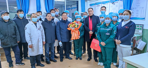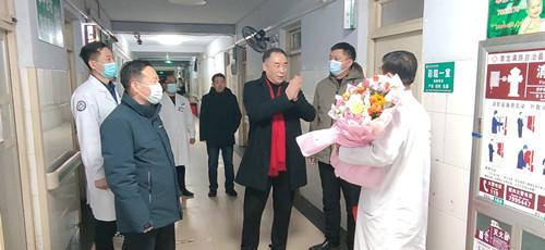 黄文选董事长、医管团队和院领导的到来为大家带来了关怀和鼓励,使每位在岗的青医人倍感亲切和温暖,大家纷纷表示衷心感谢领导的关爱,尽管冰天雪地不能与家人全家相聚团圆,但是感受到了春一般的温暖、家一般的热情,将不辜负领导们的期望,确保春节期间医院各项工作正常运转和稳定,竭尽全力为全县百姓的健康保驾护航!