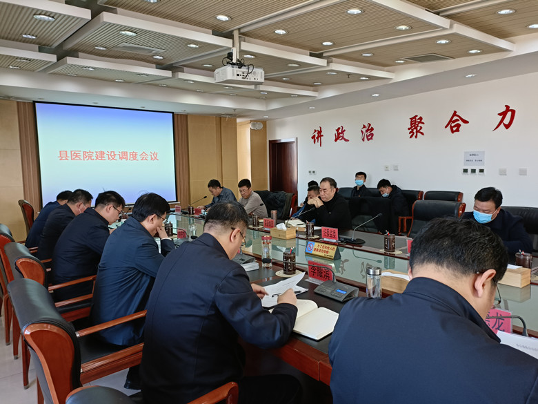 2022年2月8日上午,青龙满族自治县委、县政府在行政办公楼八楼西会议室召开青龙县医院建设调度会。县委书记李耀滨主持会议,县委副书记、县长张义金、县委常委常务副县长张德龙、县委常委县委办主任邱中凯、副县长高志山、政协副主席兼医院党总支书记李书中、政协副主席兼发改局局长肖海东、原副县长纪立功、森源投资集团董事长黄文选以及县委办、政府办、卫健局、公安局、法院、检察院、财政局、人社局、交通局、自然资源局等20个县直相关部门负责人参加会议。
