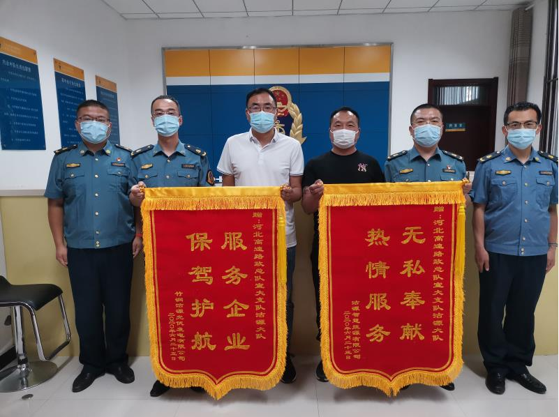 6月24日,为感谢河北高速路政总队宣大支队沽源大队对新能源项目线路跨越张承高速施工的大力支持,特举行答谢仪式,并赠予锦旗两面。