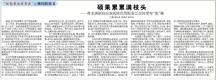 悠悠万事,民生为大。医者仁心,大爱无疆。青龙县医院转变观念、守正创新,提振患者信心,赋能医院发展,走出了一条靠优质服务重塑医院口碑的阳光大道。