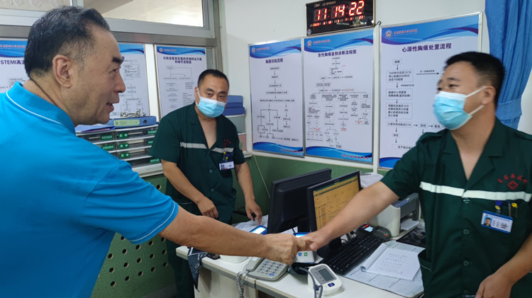 随后,董事长在徐国江院长陪同下,去临床一线慰问在岗医生并与他们进行深情交流。“祝大家节日快乐,你们辛苦啦!”董事长向奋战在一线的全体医师和医务工作者们致以节日问候,感谢大家为增进人民健康福祉作出积极贡献,让在场人员深感暖心。