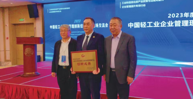 据了解,“2023年度轻工企业管理现代化创新成果”由中国轻工业企业管理协会组织开展申报和推荐,是轻工企业权威管理奖项。该成果展现了近年来我国轻工企业在推进新型工业化与现代化产业体系建设、数字化转型与智能化升级、强链补链与产业安全、深化国企改革与中国特色现代企业制度建设、组织变革与人力资源开发、管理提升与提质增效、风险防控与合规管理、质量强企与品牌培育、低碳转型与绿色发展等方面取得的成果,展示了当前我国轻工企业管理的新特点、新趋势、新模式。