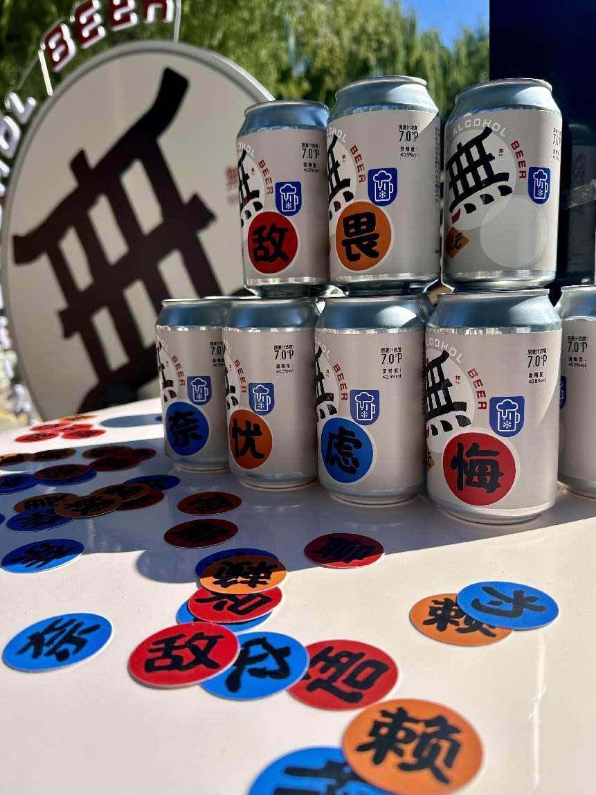 每瓶啤酒,皆附文创贴纸,妙趣横生。自 “無忧”逸兴,至“無敌”豪情,经 “無畏”英气,乃至“無聊”谐趣,每个人都能从中找到自己的标签。