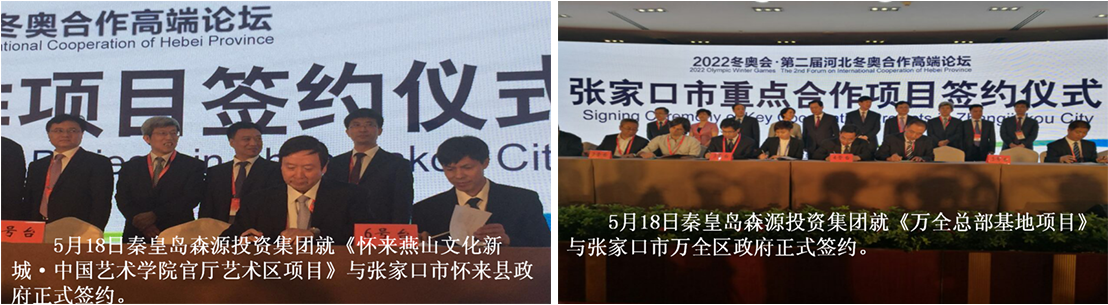 2017年5月18日,秦皇岛森源投资集团参加《2017中国•廊坊国际经济贸易洽谈会》。与万全区政府签订《高新区总部基地项目》;与怀来县政府签订《燕山文化新城•中国艺术学院官厅艺术区项目》