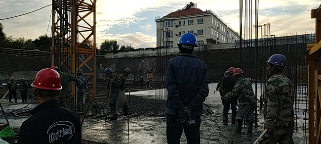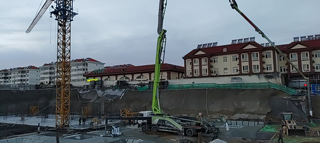 2021年10月10日,森源集团竹溪地产北戴河堂乾乐花苑项目5#楼区域基础筏板浇筑顺利完成。筏板浇筑是施工里程碑式重要节点,下一重要节点是出正负零。