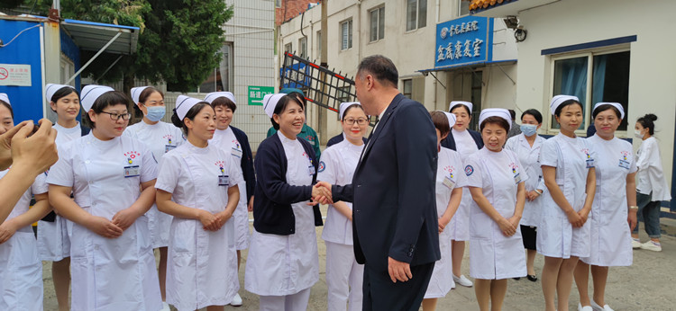 5月11日下午, 在第112个国际护士节即将来临之际,森源集团董事长黄文选百忙之中到青龙县医院慰问全院护理人员,向她们致以节日的祝福和诚挚的问候,这是黄文选董事长连续第三次在5.12国际护士节慰问全体护理人员。医院领导和森源医管团队陪同慰问。