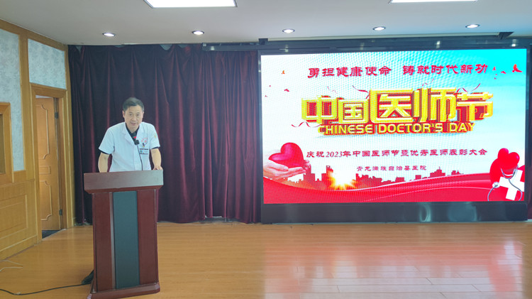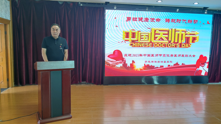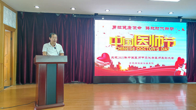 森源集团黄文选董事长做重要讲话。黄文选董事长向全院医师致以节日的祝贺和诚挚的问候,感谢全院医务人员无私奉献和责任担当,希望全院医务工作者珍惜来之不易的改革成果,要进一步提高政治站位,恪守初心牢记使命,牢守底线红线,廉洁行医,把个人的理想追求融入青医医疗事业之中。黄文选董事长号召全院职工以优秀医师为榜样,见贤思齐,取长补短,以更加饱满的热情,更加昂扬的斗志,勇担使命,立足本职,扎实工作,推动青龙医疗工作再上新的台阶、迈向新高度。