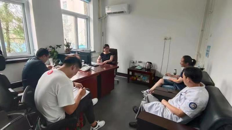 上图为:8月19日,竞聘考核工作领导小组负责人员带领人力资源科、党政办、纪检监察相关人员对8名中层干部试用期工作表现逐人分别进行考察。