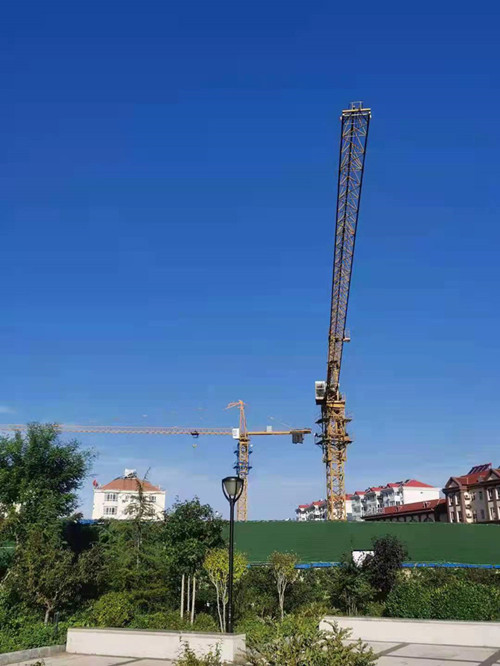 上图为工地完成安装并经验收合格后投入使用的塔吊。