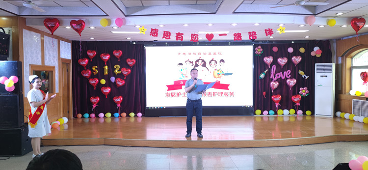 初心担使命,白衣绽芳华。在生机盎然的五月,青龙县医院迎来第112个5.12国际护士节。为弘扬南丁格尔精神,展示医院护理队伍良好的精神风貌,大力宣传护理人员的先进事迹,5月12日下午在医院门诊六楼会议室隆重举行以“发展护士队伍 改善护理服务”为主题的5.12国际护士节表彰暨文艺活动。本次活动得到了秦皇岛市相关单位、青龙县委县政府、青龙县相关单位的高度重视,青龙县委常委宣传部长刘颖、县政府副县长李鹏、秦皇岛日报社副社长马力、森源集团董事长黄文选、县卫健局局长李民、县总工会副主席张淑艳、县妇联副主席马红娟等领导应邀出席本次活动,医院党政班子及森源医管团队全体成员、各科室主任、护士长、优秀护士参会,各个科室员工在科室通过视频方式参会。