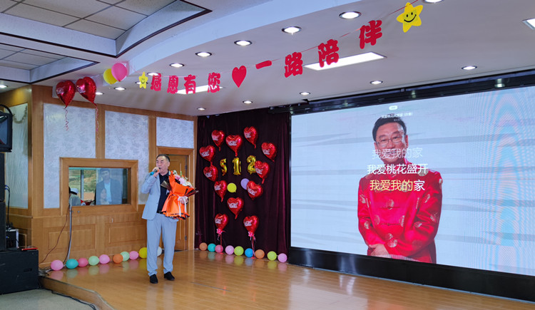 上图为森源投资集团董事长黄文选高歌一曲《我爱桃花我爱家》