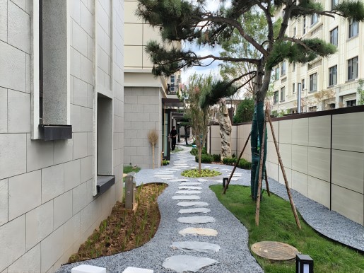 小区内一步一景,名树留影,石材铺路、流水潺潺,融合了中式园林的精髓,打造了人在园中,如在画中的美好意境。