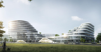 云环建筑组主体由浮云屋面和树型的支撑结构组成,以诠释全新的智慧、共生办公理念。