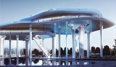 云环建筑组环抱中心森林,这里不但是办公人员和居民休息的场所,同时也是智慧生命管理的示范点。林内设有5G、AI等通讯设备,可体验到智慧生态管理的最新成果。
